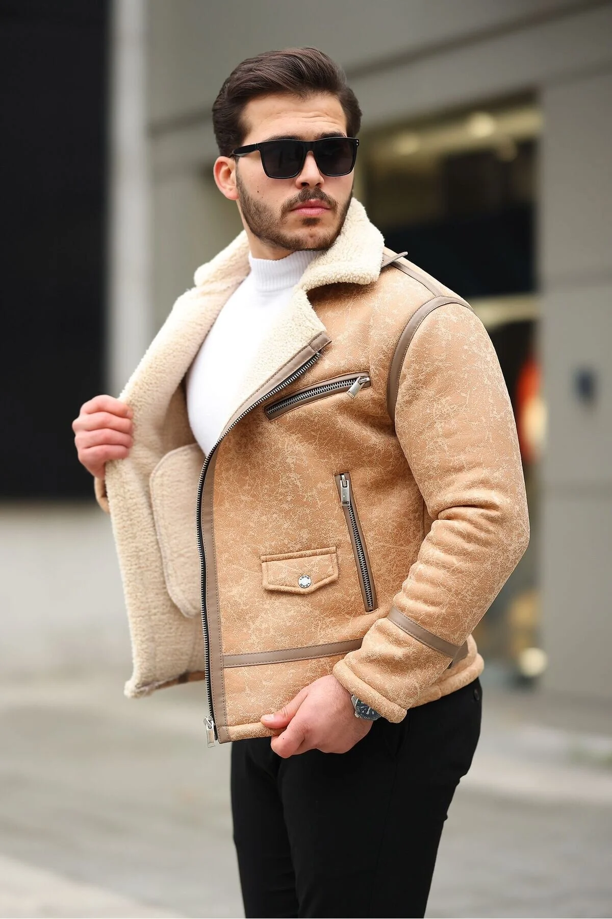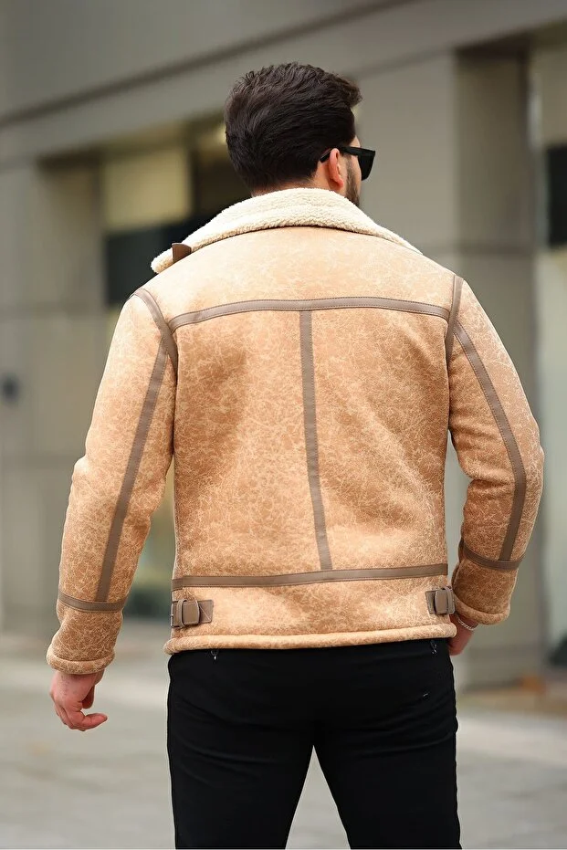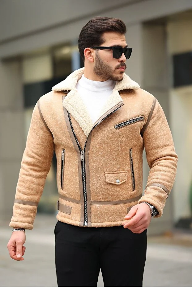 LORD life Erkek Napa Deri İçi Full Kürklü Yüksek Kalite Slim Fit bej Mont Ceket